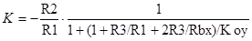 где Rtemp1, Rtemp2, Rtemp3 - значения сопротивлений 1-го, 2-го и 3-го резисторов соответственно с учётом действия температуры. RWtemp – значение входного сопротивления под действием температуры. SR1, SR2, SR3 – номинальные значения 1-го, 2-го и 3-го резисторов соответственно. SRW – номинальное значение входного сопротивления. Для получения значений коэффициента усиления (Koy) производим смещение параметров m = m(z) и s = s(z) его температурного коэффициента (aKoy) с учётом коэффициента парной корреляции dx5 - сгенерированное значение температурного коэффициента для коэффициента усиления. Воспользовавшись формулой (3.5) (для положительной области температур) или (3.6) (для отрицательной области температур) пересчитываем значения коэффициента усиления (Koy) с учётом воздействия температуры: для ‘‘+‘‘ -ой области температур:
