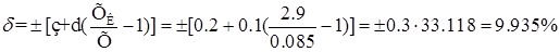 де з і в – постійні числа, виражені у відсотках, представляють, відповідно, приведені погрішності в кінці діапазону вимірювань і на початку; Межа приведеної погрішності