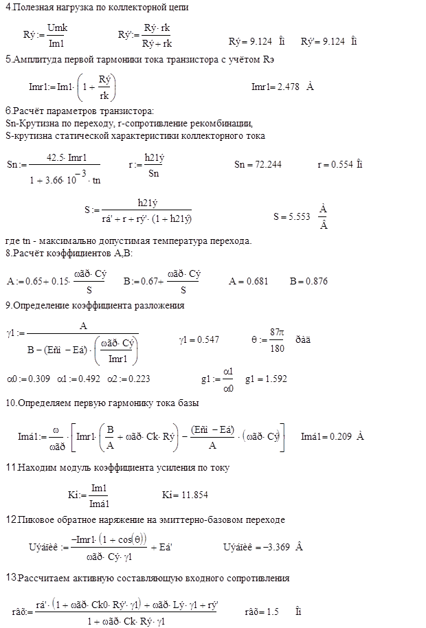 Транзистор для умножителя частоты ум4: 2Т951В (Кр=25). Т.к. каскад работает в режиме удвоения частоты, то Крум4=Кр/1,5=25/1,5=16,66