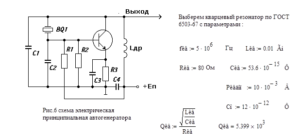 Как уже было сказано выше генератор должен иметь кварцевую стабилизацию, для того, что бы обеспечить требования по стабильности частоты. Методика расчёта изложена в [5].