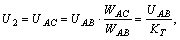 Рис. 10.9 Режим холостого хода автотрансформатора, когда I2 = 0, ничем не отличается от режима холостого хода обычного трансформатора. Подводимое к трансформатору напряжение U1 = UAB равномерно распределяется между витками первичной обмотки. Вторичное напряжение