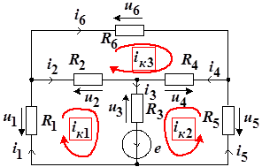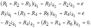 После простых преобразований получим систему трех уравнений с темя неизвестными контурными токами: