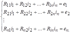 Если число уравнений получилось достаточно большим, то для решения системы уравнений применяются известные из математики методы, например, метод Крамера. Все n уравнений являются линейно-независимыми и поэтому система разрешима относительно n искомых токов. В этом случае контурный ток k–го контура определяется следующим образом: