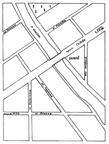 где Hп — численность населения района на конец, первого этапа проектирования, тыс. чел.; mкв — средняя норма телефонной плотности для квартирного сектора, тел/тыс. чел., mкв = 420 тел/тыс. чел. Численность населения района определяется из следующего выражения: Nп = Hp × (1+p/100)t = 19× (1+1.75/100)5 = 20.72 (2) где Hр - численноcть населения в текущем (на начало проектирования) году, тыс. чел.; р - средний процент ежегодного прироста населения в городах, равный 1.5 . . . 2% для всех этапов проектировании; t — число лет с момента проектирования до пуска РАТС. Следовательно из формулы 2 получаем: Nкв = 420×20.72 = 8702.4 Принимаем Nкв = 8703 номеров. Количество номеров учережденческого сектора определяется из следующего произведения: Nуч = Hп×q×mуч = 20,72×0,5×100 = 1036 (3) где q — коэффициент, учитывающий процент населения занятого в различных отраслях народного хозяйства, q = 0,5; mуч — средняя норма телефонной плотности для учрежденческого сектора, тел/тыс. чел., mуч = 100 тел/тыс. чел. Далее получаем суммарное количество телефонов для квартирного и учережденческого секторов, которое будет являться номерной емкостью проектируемой РАТС: ∑ = 8703+1036 = 9739 номеров. Отсюда номерная емкость проектируемой РАТС равна 10000. Следует отметить, что на ГТС многие крупные предприятия и учреждения имеют свои внутренние УАТС. В связи с этим необходимо запроектировать строительство УАТС и определить ее номерную ёмкость. УАТС в курсовом проекте находится ориентировочно. Исходя из задания имеется одна УАТС на предприятии, при численности около 1800 человек (завод). Номерная ёмкость УАТС завода равна 75×1,8 = 135 номеров. Для расчета принимаем 150 номеров. Количество соединительных линий к УАТС определяется расчетом по создаваемой ими нагрузке. Максимальное количество абонентов, имеющих право связи с РАТС, для УАТС промышленных предприятий и учреждений составляет 25—30%, от монтируемой емкости УАТС. Соответственно количество линий 150×0,3 = 45 линий. Городская телефонная сеть предоставляет возможность передавать по линиям связи информацию различных видов. Для передачи этой информации используются отдельные цепи, которые называются прямыми проводами. При проектировании линейных сооружений РАТС предусматриваем в кабелях пары для прямой связи (прямые провода), количество которых составляет 5% к номерной ёмкости РАТС и составляет 10000×0,05 = 500 пар. В курсовом проекте кроме абонентских пунктов квартирного и учрежденческого секторов предусмотрены пункты таксофонов. Число таксофонов равно 2-4% емкости РАТС. Число таксофонов соответственно 10000×(0,02…0,04) = 200…400. Для расчета принимаем среднее значение 300 единиц. Число соединительных линий (исходящих и входящих) между проектируемой РАТС и МТС принимается равным 1% от ёмкости РАТС и составляет 10000×0,01 = 100 линий, с другой РАТС — соответственно 10000×0,03 = 300 линий. 1.2 Выбор места строительства здания АТС Для определения места строительства здания проектируемой станции необходимо знать распределение номерной емкости РАТС по территории района. Для этого первоначально на плане района наносим жилые дома, учреждения, заводы и т. п. Провести в курсовом проекте точное размещение телефонных аппаратов по территории проектируемого района не представляется возможным, поэтому размещение выполняется ориентировочно. Размещение телефонов квартирного сектора производится в соответствии с располож