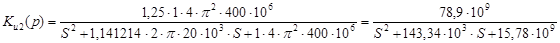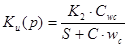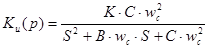 Итоговое уравнение передаточной характеристики формируется перемножением передаточных характеристик каждого звена с подставленными коэффициентами К1 , К2 , К2, B и С. В каждом случае К представляет коэффициент усиления звена, В результате получается следующее уравнение: