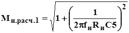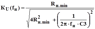 Коэффициент передачи RC-цепи связи на нижней граничной частоте вычисляется по формуле (1.3.32):