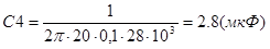 Расчетные значения сопротивлений R4 и R6 приблизительно равны. Ближайшее номинальное значение по ГОСТ 10318-80 равно 50 кОм. Емкость конденсатора С4 находится по формуле (1.3.27):