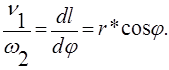 Передаточная функция механизма в виде отношения линейной скорости кулисы и угловой скорости рычага: