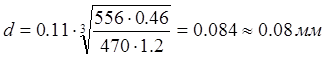 2 Визначення діаметра проводу згідно формули: