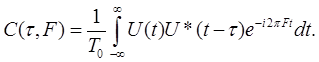 которая является усредненным по времени произведением двух сигналов, рассовмещенных во времени на величину τ и по частоте на величину F: