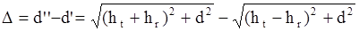 Из рис.1.1 видно, что разность хода прямого луча и луча с отражением от земли