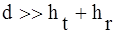 в свободном пространстве (без учета отражения), На больших удалениях, когда выполняется соотношение