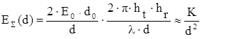 где К - константа, связанная с амплитудой поля Е0, высотами подвеса антенн и длиной волны. Мощность, принятая приемной антенной, пропорциональна квадрату напряженность поля: