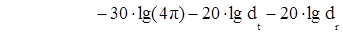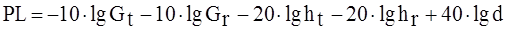 Из формулы (1.7) видно, что на больших расстояниях принятая мощность убывает обратно пропорционально d4 или 40 дБ на декаду. Это существенно быстрее, чем в свободном пространстве. Для двухлучевой модели в соответствии с (1.7) потери мощности в радиоканале определяются выражением