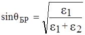 Угол Брюстера имеет место только для вертикальной поляризации поля. Коэффициент прохождения слоя можно представить в виде
