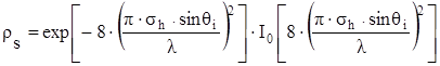 где sh - стандартная девиация высоты поверхности вокруг среднего значения высоты. После некоторых уточнений коэффициент потерь рассеяния с хорошим совпадением с практикой определяется выражением