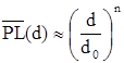 где n - показатель степени, который показывает, с какой скоростью возрастают потери передачи от расстояния; d0 - расстояние от излучателя до границы отсчета, в - расстояние между излучателем и приемником. Черта в (2.1), (2.2) означает среднее из возможных значений потерь для данного расстояния d. На диаграмме в логарифмическом масштабе график ослабления описывается наклонной прямой с коэффициентом наклона 10. n дБ на декаду. Показатель n зависит от конкретных параметров среды распространения. Таблица. Показатель n ослабления поля для различных условий распространения радиоволн
