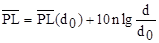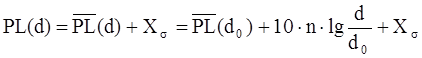 где dt иdr - расстояние от рассеивающего объекта до излучателя и приемника. Это уравнение корректно для дальней зоны излучателя и приемника. 2. Практические модели, используемые для расчета ослабления сигнала в радиоканалахБольшинство моделей, используемых при решении задач распространения радиоволн, учитывают одновременно аналитические и экспериментальные данные. Экспериментальный подход основан на использовании графиков и аналитических выражений, описывающих данные предварительных измерений. Преимущество этого подхода состоит в учете большинства факторов, влияющих на распространение радиоволн. Иногда в задачах мобильной связи используются классические модели радиолиний, которые позволяют моделировать в крупном масштабе линии связи. Например, двухлучевая модель позволила предсказать работоспособность сотовых систем до их появления. Ниже представлены некоторые модели радиолиний. 2.1 Потери передачи в удаленных линияхКак теоретические, так и экспериментальные исследования подтвердили, что принимаемая мощность изменяется по логарифмическому закону. Этот закон выполняется как для радиолиний вне зданий, так и внутри их. Средние крупномасштабные потери при произвольном расстоянии излучатель - приемник описываются выражением