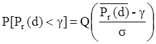 где xs - случайная величина c нормально-логарифмическим законом распределения со стандартной девиацией s, дБ. Данные формулы могут быть использованы для расчета поля в реальных системах связи при наличии случайных ослабляющих сигнал факторов. На практике величины n и s обычно определяются из экспериментальных исследований (рис.12). Поскольку значение PL (d) - случайная величина с нормальным распределением по шкале дБ от расстояния d, также случайно распределена и функция Pr (d). Для определения вероятности того, что принятый сигнал будет выше (или ниже) особого уровня, может быть использована функция Q: