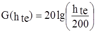 Рис.14. Поправочный коэффициент, обусловленный профилем радиотрассы. Кроме того, Okumura нашел, что величина G (hte ) изменяется по закону 20 дБ/декада, а G (hre ) для высот менее 3 м - 10 дБ/декада: