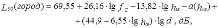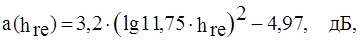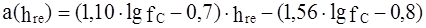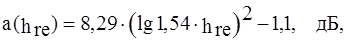 Где fc - частота от 150 до 1500 МГц, hte - эффективная высота базовой антенны (от 30 до 200 м), hre - эффективная высота мобильной антенны (от 1 до 10 м), d - расстояние от передатчика до приемника, км, a (hre ) - корректирующий фактор для эффективной высоты мобильной антенны, который является функцией величины зоны обслуживания. Для небольших и среднего размера населенных пунктов: