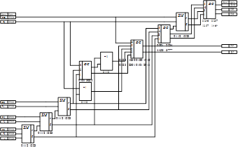 Вариант 2 Эта схема состоит из 4-х сумматоров,2-х элементов «исключающее или» и 4-х блоков. Схема приведена на рис.3. Результаты трассировки для различных типов микросхем приведены в таблице 2.