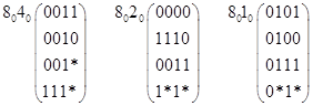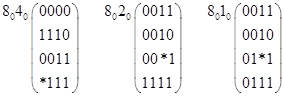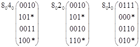 2.5 Покрытие блоковПроведя сравнительный анализ по таблицам 5, 6, можно сделать вывод о том, что оптимальным является первый вариант разложения. Проведем покрытие блоков при помощи мультиплексоров типа 4/1. С помощью мультиплексора типа 4/1 можно реализовать любую логическую функцию 3-х аргументов, поскольку при разложении исключаются 2 аргумента, а на входы Логическая последовательность первого блока: 0012 345* 6633 700*