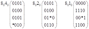 Матрицы разложения имеют вид: 1) 2) 3) Используя данные разложения, представим схему данного блока (графическая работа “Схема электрическая принципиальная блока DC3”). Логическая последовательность четвертого блока: 012345602347*476