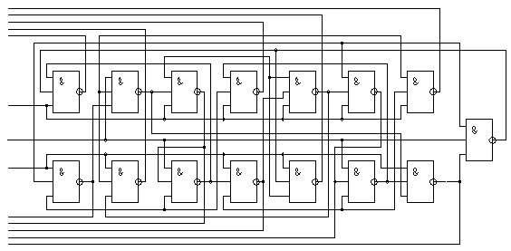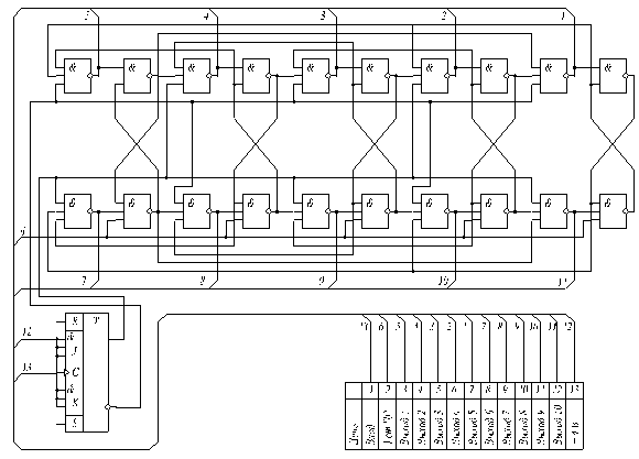 Так как К155ЛА4 содержит три модуля, элементы X5, X11, X14 помещаем в одну микросхему. Для оставшихся несвязанных элементов будем продолжать компоновку. Таблица 6
