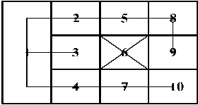 Рис.6 3. Трассировка цепей питания и землиТрассировка – прокладка электрических трасс (проводов при проводном монтаже и печатных соединений при печатном монтаже), соответствующих принципиальной электрической схеме. 3.1 Краткое описание алгоритма КраскалаВ алгоритме Краскала кратчайшую связывающую сеть (КСС) строят путем последовательного присоединения к ним ребер, удовлетворяющих следующим условиям: 1.Ребра должны быть кратчайшими. 2.Ребро не должно соединять изолированные вершины. 3.Ребро не должно образовывать циклы. 4.Присоединение рассматриваемого ребра не приводит к повышению степени вершины выше заданного числа. На первом этапе в данном множестве вершин строится полный граф и задается матрица расстояния. На втором этапе упорядочиваются ребра в порядке возрастания их длины, и на последнем этапе построение КСС осуществляется последовательным выбором ребер, удовлетворяющим 4-м условиям, при этом формируется массив индексов ребер, которые анализируются по этим 4-м условиям. 3.2 Трассировка цепей земли по алгоритму КраскалаРасположим расстояния между контактами в порядке возрастания, используя рисунок 5 и таблицу 11 для расстояния равного 1,2,3,4: 1: d1-2 , d1-3 , d1-4 , d2-3 , d2-5 , d3-4 , d3-6 , d4-7 , d5-6 , d5-8 , d6-7 , d6-9 , d7-10 , d8-9 , d9-10 ; 2: d1-5 , d1-6 , d1-7 , d2-4 , d2-6 , d2-8 , d3-5 , d3-7 , d4-6 , d4-10 , d5-9 , d6-8 , d6-10 , d7-9 , d8-10 ; 3: d1-8 , d1-10 , d2-7 , d2-9 , d3-8 , d3-10 , d4-5 , d4-9 , d5-10 , d7-8 ; 4: d1-9 , d2-10 , d3-9 , d4-8 , d5-7 .