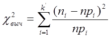 Рисунок 14 – Сглаживание гистограммы плотностью экспоненциального распределения Используя критерий χ2 , установим, верна ли принятая гипотеза о том, что статистические данные подчиняются равномерному распределению, так, чтобы ошибка не превышала заданного уровня значимости α (вероятность того, что будет отвергнута правильная гипотеза). Для применения критерия χ2 необходимо, чтобы частоты ni , соответствующие каждому интервалу, были не меньше 5. Для этого при необходимости объединим рядом стоящие интервалы, а их частоты суммируем. Далее вычислим следующую сумму: