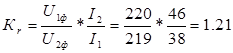 Так как Xk=X1 +X2 ’, причем X1 »X2 ’ примем: X1 =0.68 Ом, X2 ’=0.7 Ом. Рассчитаем коэффициент приведения сопротивления Кr :