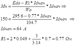 Т.к. отношение m>>8, следовательно, при расчетах мы можем пренебречь влиянием обратной связи по ЭДС двигателя. Для определения коэффициентов двигателя Се и См рассчитаем значение Idнач из формулы: