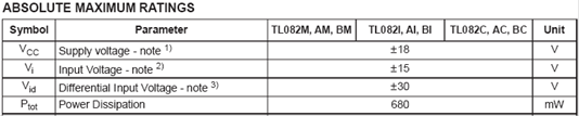 Будемо використовувати одно полярне живлення +5В. Далі приведу максимальні значення вхідних та вихідних сигналів: