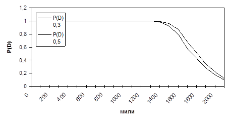 Из графика (рис. 2.) определим максимальную дальность, соответствующую наименьшему допустимому соотношения для каждого сигнал/шум для каждого из уровней слежения. · при уровне слежения 0,3: Dmax – из графика равно 1710 миль · при уровне слежения 0,5 – Dmax – из графика равно 1775 миль
