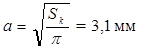 5. Определяем радиус площади перекрытия контактов: