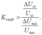 Коэффициент стабилизации по напряжению представляет собой отношение относительного изменения входного напряжения к относительному изменению выходного:
