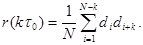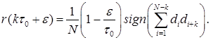 Склавши елементи кожного вертикального стовпця, визначимо значення автокореляційної функції цієї послідовності в дискретних точках. Побудувавши ці значення на графіку, отримаємо автокореляційну функцію послідовності, яка відрізняється від нормованої автореляційної функції лише масштабом по осі ординат. Викладена методика є по суті матричним представленням виразу: