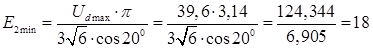 Розрахунок діапазону регулювання випрямляча: Дана схема трифазного випрямляча буде працювати в режимі безперервного струму навантаження й позитивного выпрямленного напруги, при цьому кут регулювання змінюється в межах Регулювальна характеристика описується вираженням: