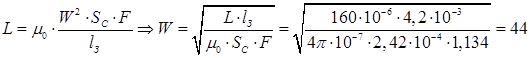 З довідника вибирається сердечник ШЛ 12*25 з параметрами: а = 12, в = 25, з =12, h = 30 мм, So = 3,6 див2 , ScSo = 10,8 див4 , lc = 10,2 див, активний перетин сердечника ScKc =2,42 див2 , ScKcSo = 8,712 див4 . Число витків дроселя: