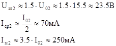 , де По наближеним формулам [2, табл.VIII.5], знаходимо значення зворотної напруги на діодах Uзв2 , середнього струму Iср2 та амплітуди струму Iм2 , через діоди: