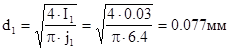 Згідно з [1, с. 46], для трансформаторів, що працюють на частоті 50Гц 7.4.6 Розрахунок діаметрів провідниківДля зменшення локального перегріву котушки, густину струму в первинній обмотці робимо на 20% менше ніж розрахункове значення, a густину струму у вторинній обмотці на 20% більше, тоді діаметри провідників будуть: