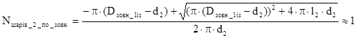 Визначимо кількість шарів вторинної обмотки по внутрішньому діаметру магнітопровода: