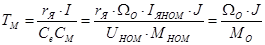 где Uном - номинальное напряжение двигателя; W0 - угловая скорость идеального холостого хода (при U=Uном и Mн =0); Iном и Мном - номинальный ток якоря и вращающий момент. В формуле (3) приняты обозначения: - электромеханическая постоянная времени