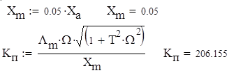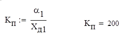 2.3 Из условия, что максимальное значение ошибки в переходном режиме не должно превышать значения 50% полуапертуры дискриминатора системы при заданном значении скачка скорости воздействия: Максимальное значение ошибки слежения при ступенчатом изменении скорости в зависимости от КП приближенно описывается выражением:
