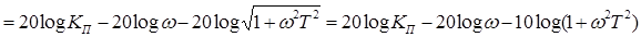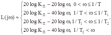 Рассматривая ЛАЧХ системы первого порядка астатизма в различных диапазонах частот, получаем: