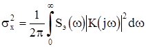 Делаем вывод, что система с выбранной коррекцией будет устойчива, о чём свидетельствуют следующие признаки: 1) Частота среза находится на участке характеристики с наклоном -20дБ/дек. 2) Наклон ЛАЧХ на высоких частотах не превышает -40 дБ/дек. 3) Запас устойчивости по фазе более 300 . 4. Расчет дисперсии ошибки слеженияДля расчета дисперсии флуктуационной составляющей ошибки слежения можно воспользоваться частотным методом: