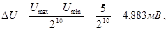 При заданных приделах изменения входного сигнала шаг квантования АЦП: