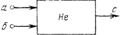 Практически наиболее часто используют ЛЭФП сложения (ИЛИ), умножения (И) и отрицания (НЕ). Основной задачей функционального синтеза ИС является построение ее мелкомасштабной схемы, обладающей высокой степенью однородности. Под мелкомасштабной функциональной схемой (моделью) ИС будем понимать документ, определяющий число ЭФП, комплекс которых полностью отражает характер и последовательность происходящих в ИС функциональных преобразований сигналов, их типы и взаимосвязь между ними. Процесс синтеза функциональной схемы, в основном; сводится к ее последовательной детализации с помощью разукрупнения функциональных элементов вплоть до ЭФП. Первый этап указанного синтеза, предусматривающий разделение общего алгоритма функционирования ИС на ряд частных и менее сложных алгоритмов, осуществляется посредством специальной отработки технического задания. Частные алгоритмы решения основных и вспомогательных задач взбираются по степени их важности. Первая, основная задача реализуется в виде определенного участка синтезируемой схемы, она становится как бы центром (ядром) ее «кристаллизации». Этот участок последовательно наращивается по мере реализации основных, а затем и вспомогательных задач алгоритма. Полученная таким образом схема может быть относительно крупномасштабной. Поэтому ее детализируют последовательным понижением уровня сложности функциональных элементов, т. е. с помощью «расщепления» их на простые. В результате общее число элементов интегральной микросхемы увеличивается. При синтезе относительно несложных функциональных схем последние непосредственно составляются из ЭФП. При синтезе логических схем со множеством входов и одним выходом придерживаются следующих правил: а) выбирается так называемый базис или система ЛЭФП (чаще всего схемы И, ИЛИ, НЕ), из которых будет синтезироваться интегральная схема; б) алгоритм работы схемы описывается известными законами математической логики через соотношения, определяемые выбранными ЛЭФП; в) общее выражение алгоритма разбивают на ряд менее сложных взаимосвязанных между собой частных функций; г) на основе выбранной системы частных функций строят логическую схему. Для иллюстрации рассмотрим два примера. Пример 1. Синтезировать логическую функциональную схему автоматического устройства. Входы. Схема имеет четыре входа, на которые подаются потенциальные сигналы (логические «нуль» и «единица»). Выходы. Схема имеет один сигнальный выход. Алгоритм работы схемы имеет вид
