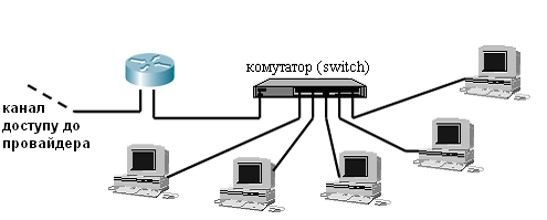 Рис.4.1.Під ’ єднання до Інтернету на основі одного DSL - модему. - забезпечити кожному користувачу окремий DSL-модем на робочому місці та окрему телефонну розетку;